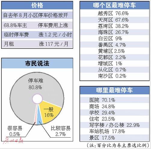 2015年8月,廣州放開小區(qū)停車收費(fèi)價(jià)格。調(diào)查顯示,截至調(diào)查結(jié)束時(shí),68.8%的車主表示小區(qū)停車費(fèi)用上漲,31.5%表示小區(qū)臨時(shí)停車費(fèi)和月租均上漲,16.5%表示小區(qū)僅上漲了臨時(shí)停車費(fèi),20.7%表示小區(qū)僅上漲了月租。