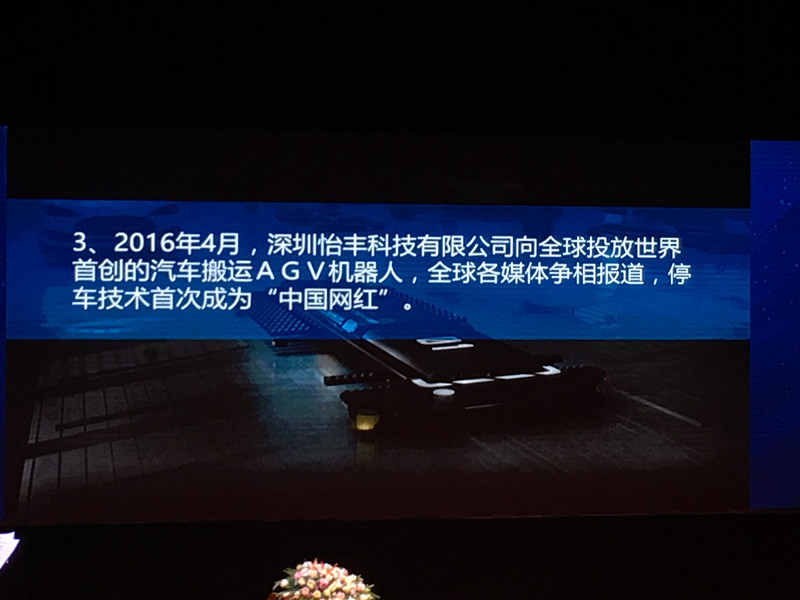 3、2016年4月,深圳怡豐科技有限公司向全球投放世界首創的汽車搬運AGV機器人,全球各媒體爭相報道,停車技術首次成為“中國網紅”。