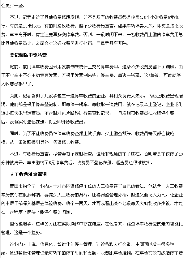 [公告]莆田:為防收費員私吞 監管員不定時巡邏